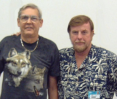 Charlie Gressett (ran Peavey Quality Control), Chip, and R.T. Lowe (ran the Peavey Assembly Department) during a visit in February 2003.