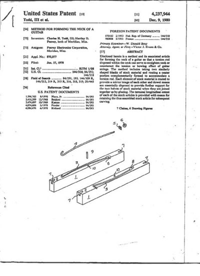 This particular neck had all zero’s for a serial number. This particular neck, “GUITAR DEPT 3”, was a fretless neck made for Charley Gressett, and was, literally, the third neck carved on the gunstock carving machine at Peavey. There were multiple guitars with zero serial numbers floating around in the early days. These were primarily “non production” units, and were not supposed to get out into the public. Salesmen would take these to shows, etc. Most people were unaware at the time that Chip inserted decimal points in different places on the zeroed-out serial number........depending upon who the sales person was. This left an easy trail to follow if an early non production model were to ever slip out. About 10 samples went out to Chet Atkins and Jerry Reed, with bogus numbers as well.
