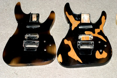 This is a custom Vandenburg made for an endorsing artist. Typically when a request for a special guitar comes in, three identical units are made. This insures the artist receives the guitar in a timely fashion, even when mistakes are made on the production line. These are two bodies left over from this process.